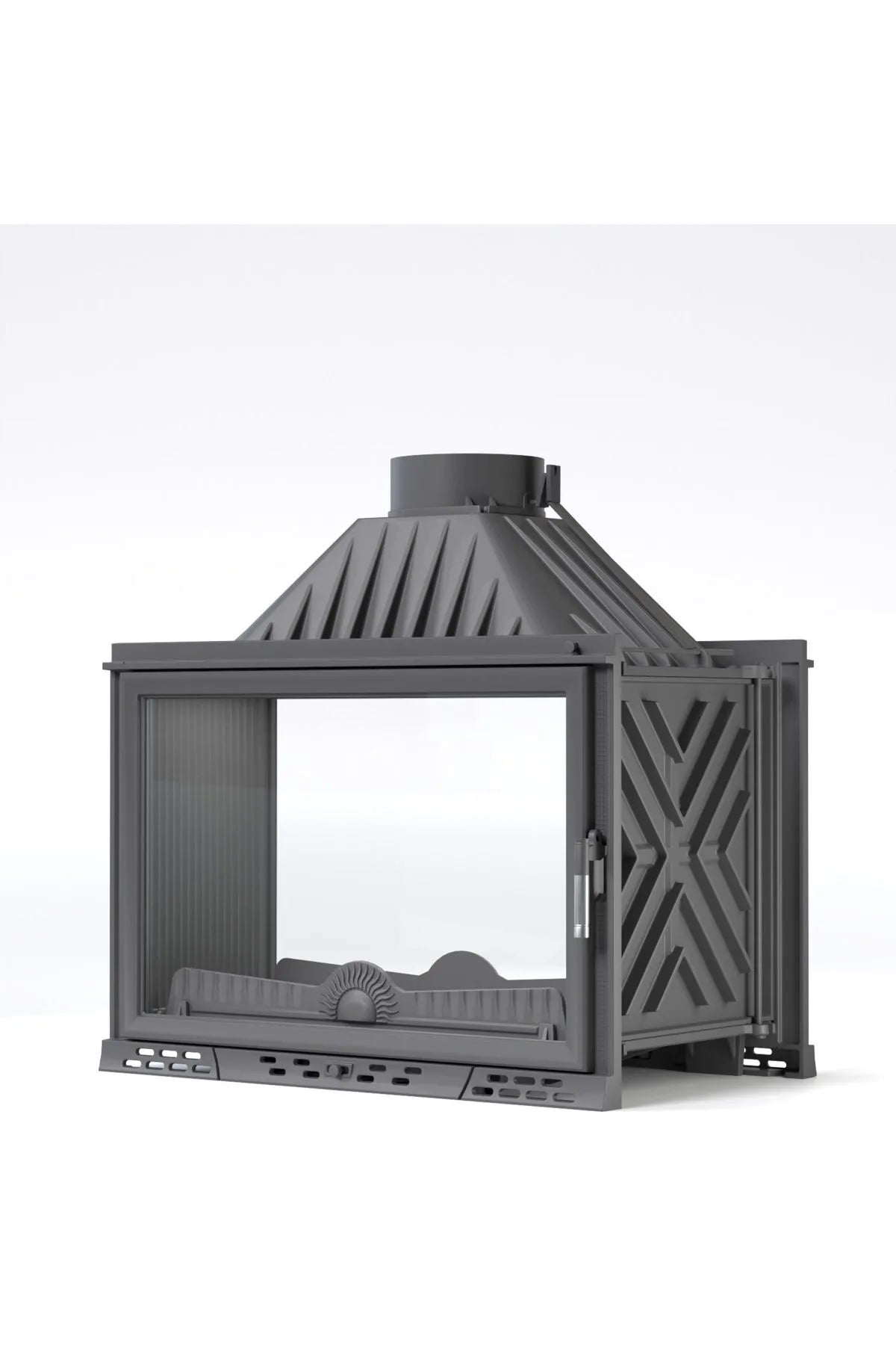Luxuriöse Kaminkammer aus Gusseisen mit offenem Tunnel vorne und hinten – 80 Liter