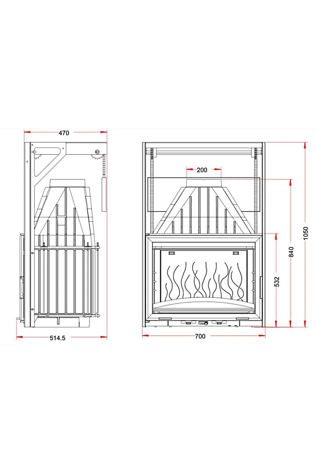 Asansörlü Döküm Şömine Haznesi Sağ Açık 700