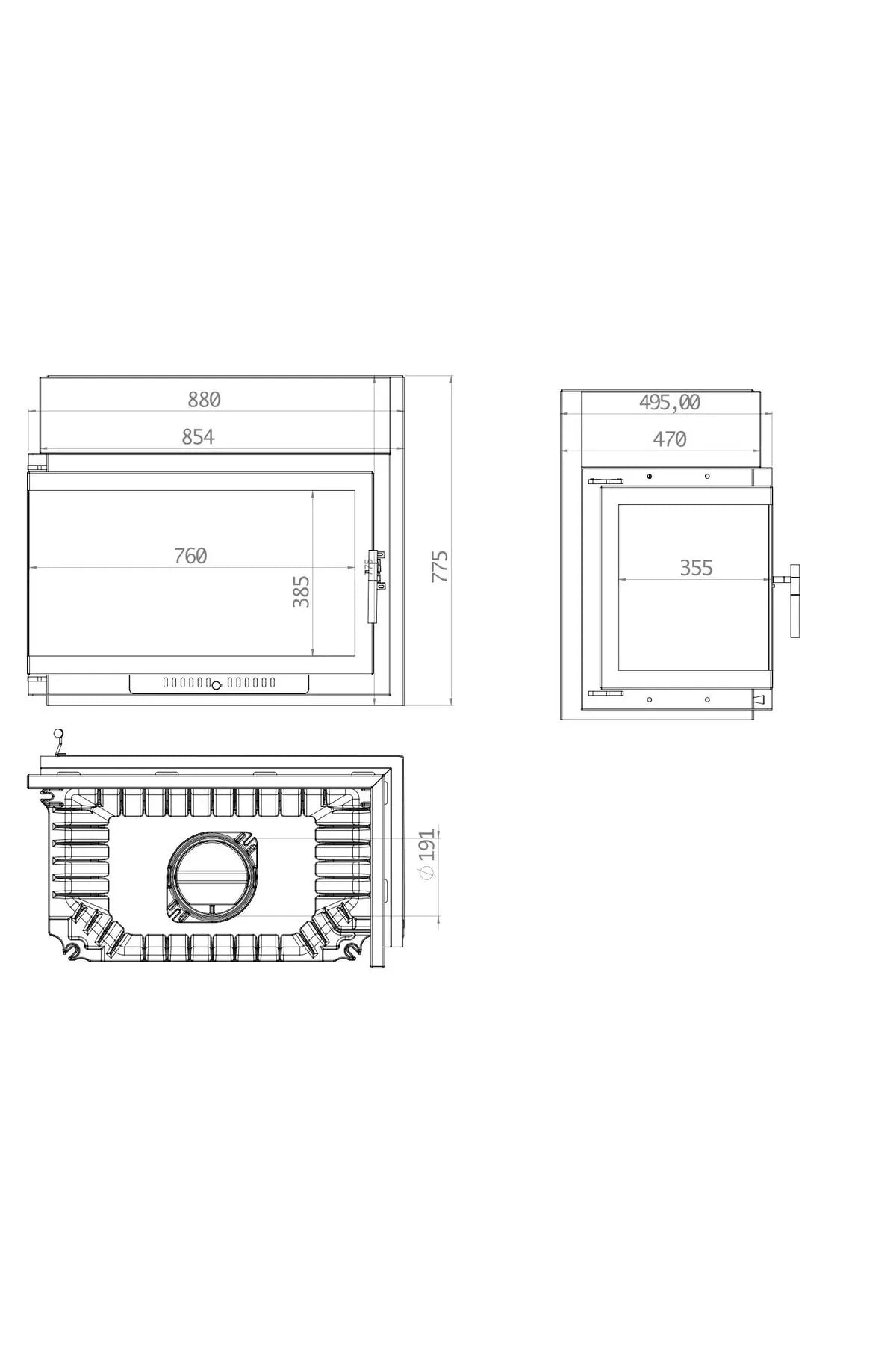 Genişlik : 880 mm ; Yükseklik : 775 mm ; Derinlik : 470 mm ; Baca Çapı : 200 mm ; Ağırlık : 130 kg ; Malzeme :Döküm ; Nominal Çıkış : 18 kw ; Isıtma Gücü Aralığı : 11 - 24 kw ; Verimlilik : % 85 ; Cam : Seramik cam ; Ortalama termin süresi 7-15 gün arasıdır ;