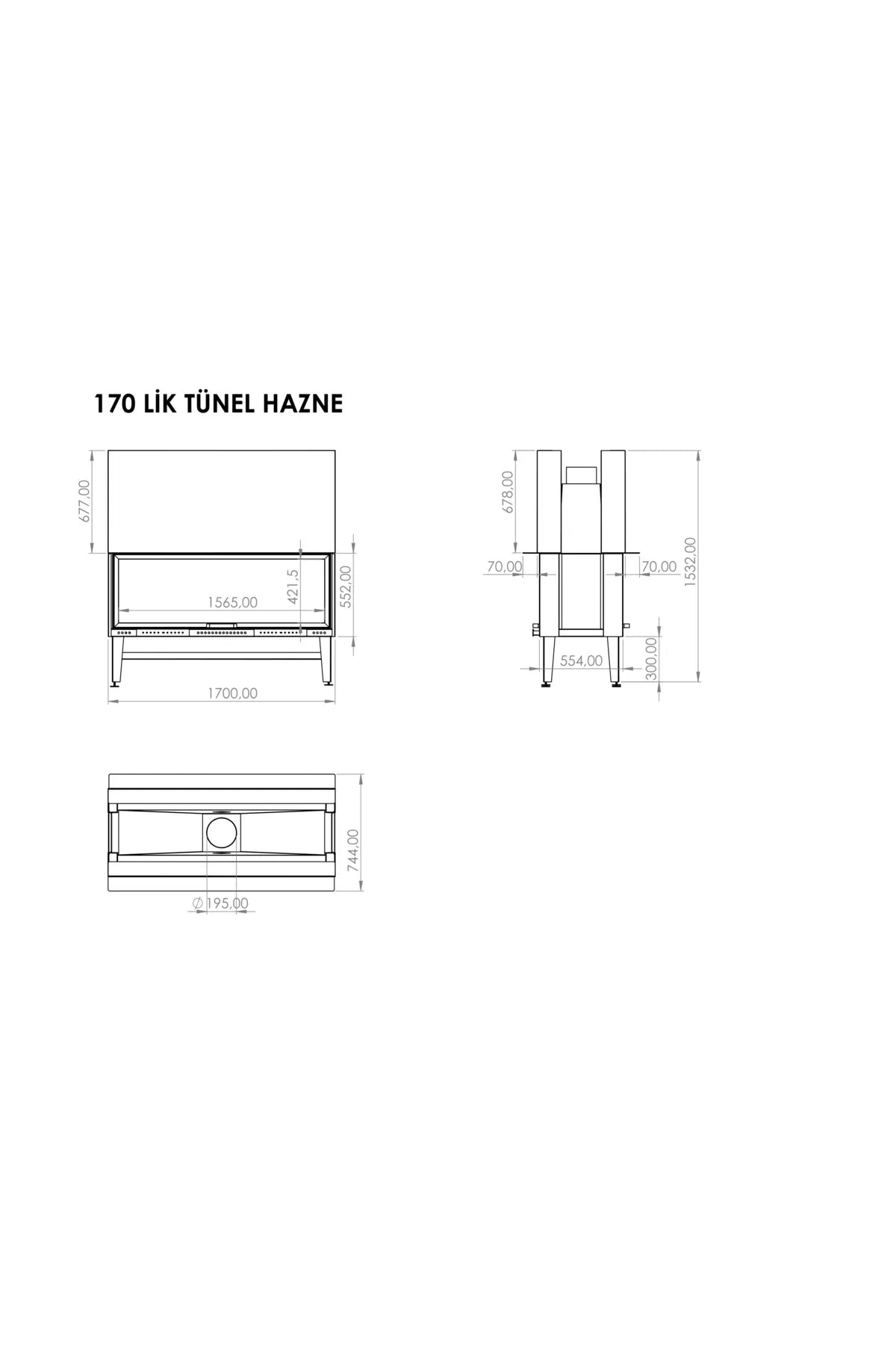 SERRA ASANSÖRLÜ ÖN ARKA AÇIK TÜNEL ŞÖMİNE HAZNESİ -170 CM