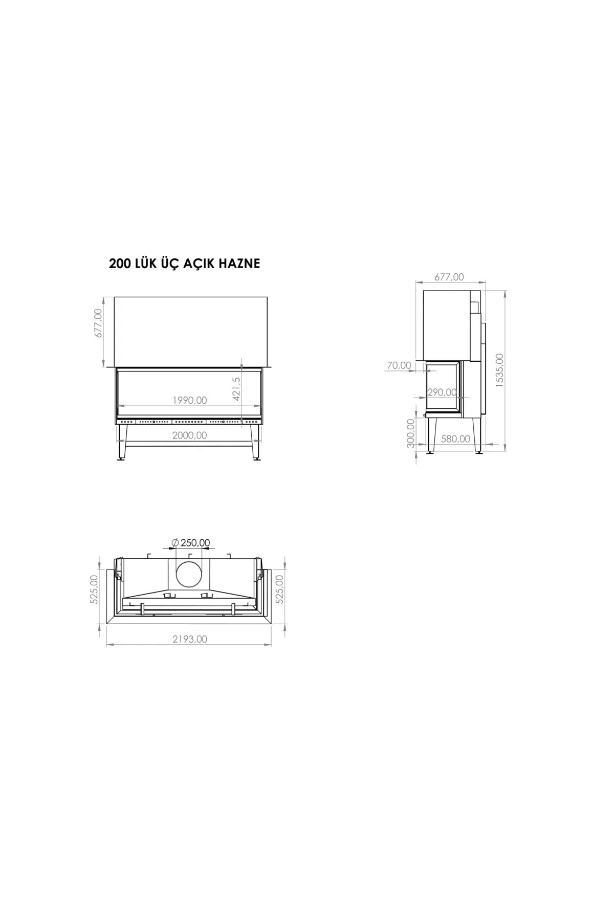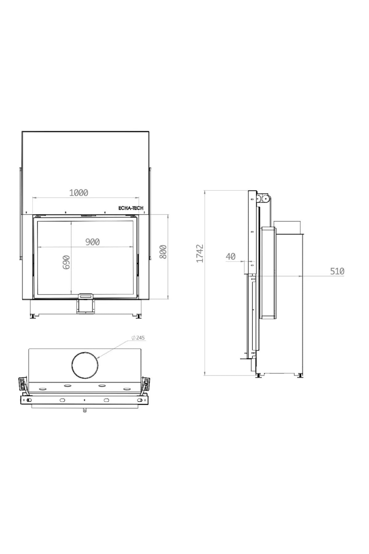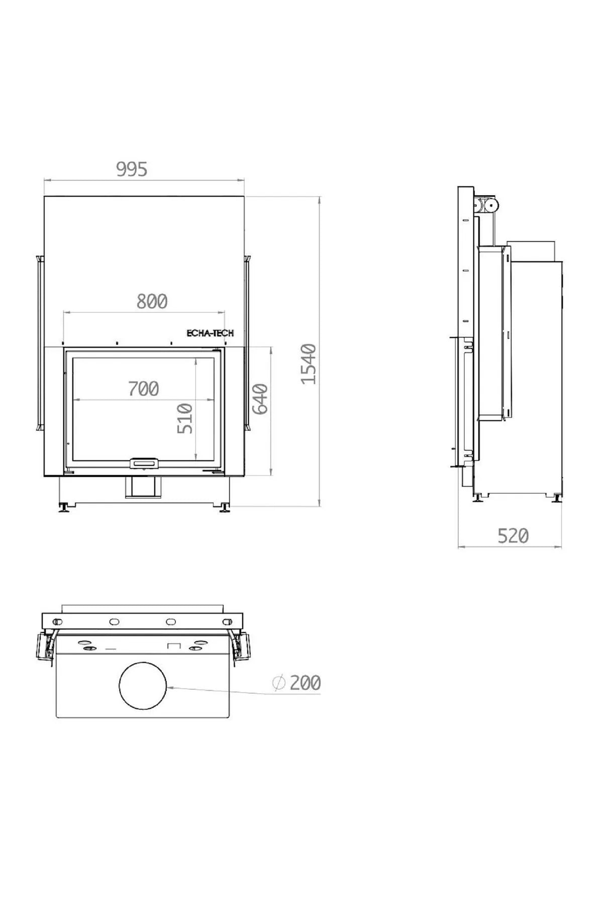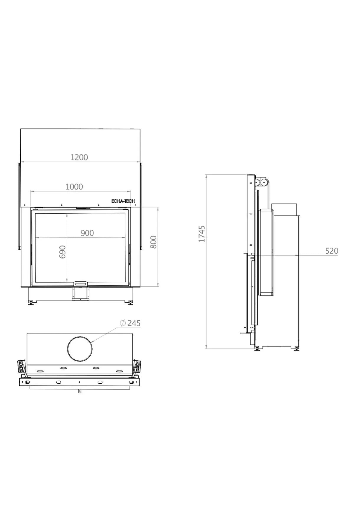 U-TYP DREI OFFENE KAMINKAMMER MIT AUFZUG -70 CM