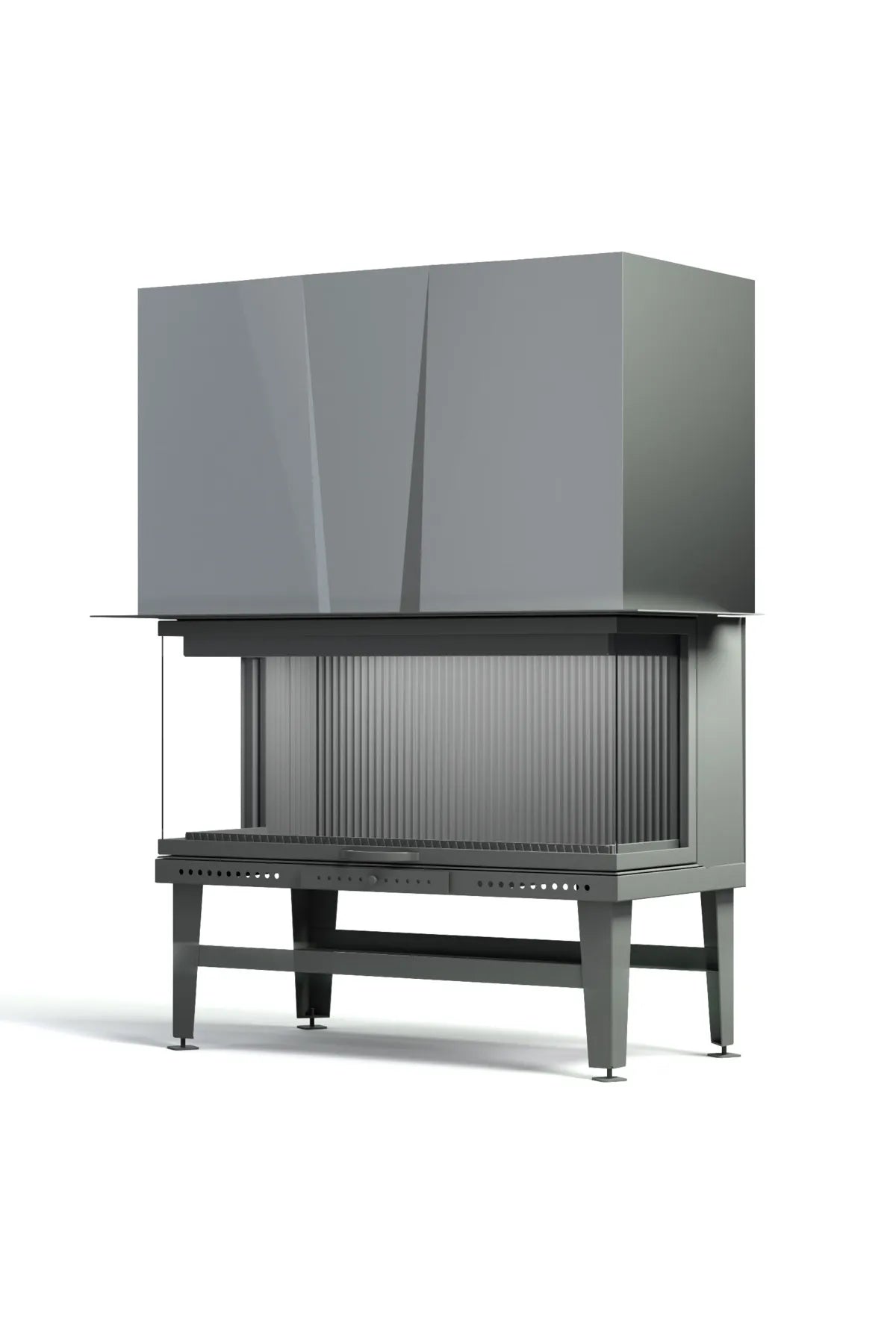 Erhöhte Kaminkammer aus Stahl, flach, 120 Liter