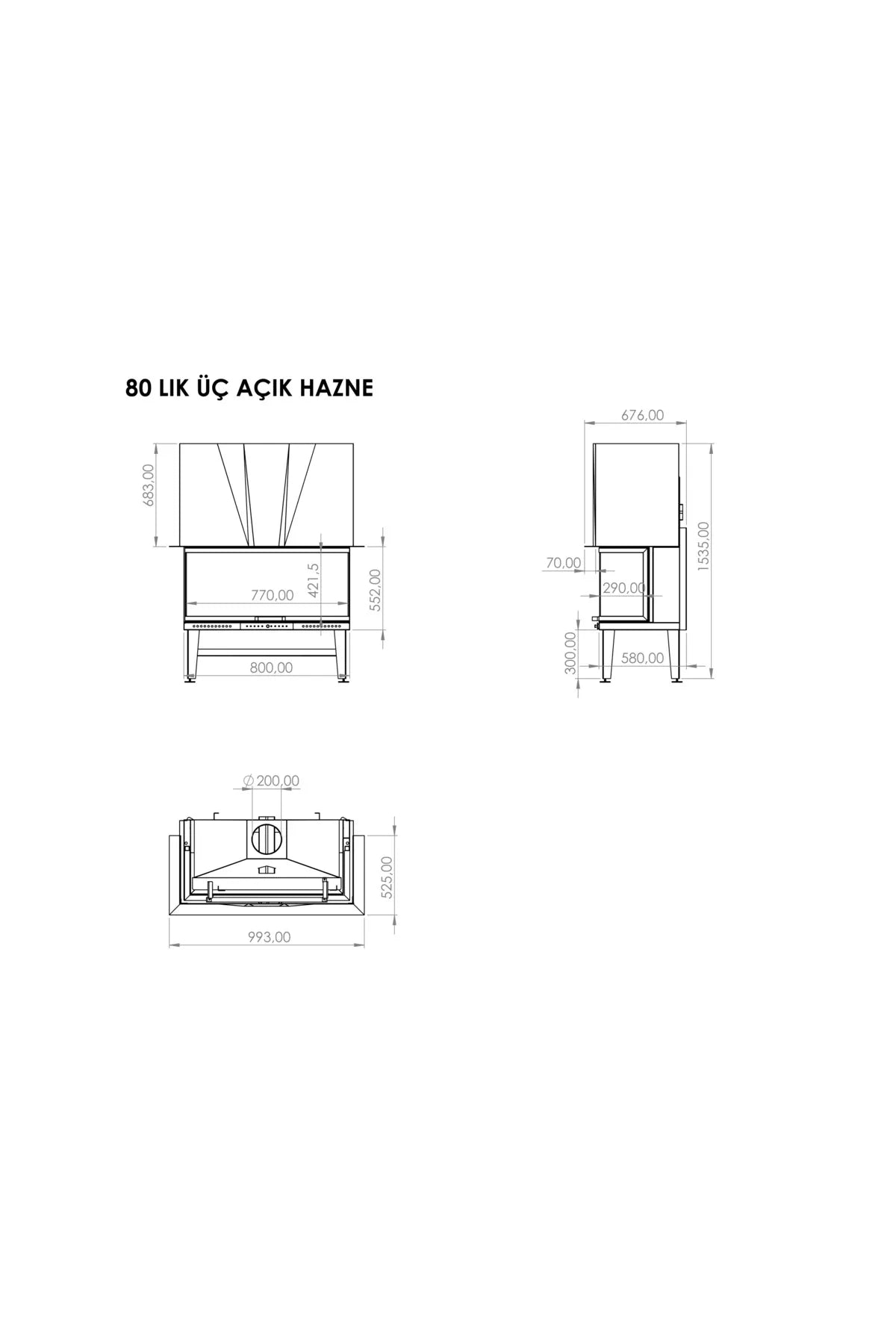 U-TYP DREI OFFENE KAMINKAMMER MIT AUFZUG -80 CM