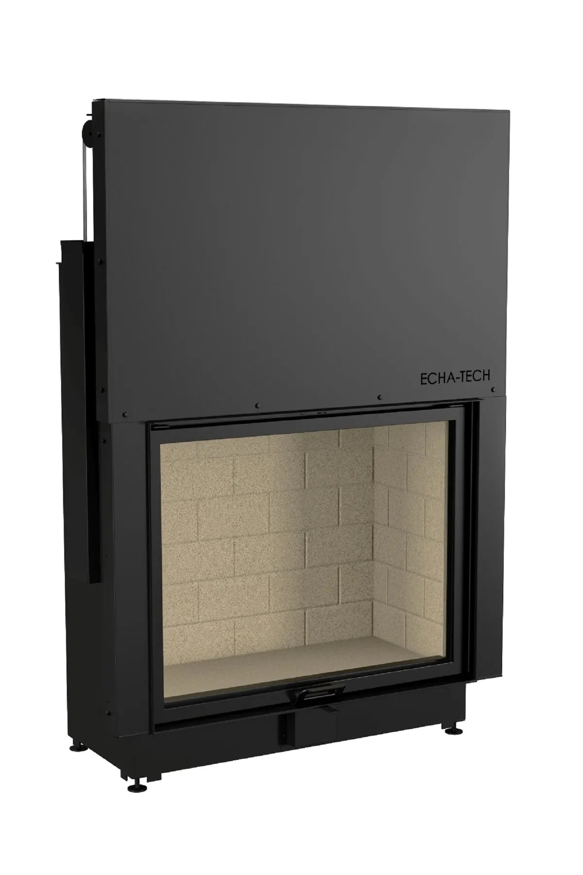 Echa Tech Erhöhte Kaminkammer aus Stahl, flach, 100 x 80; Nennleistung: 18 kW; Heizleistungsbereich: 11 - 24 kW; Heizeffizienz: 85 %; Gewicht: 300 kg; Material: Stahl; Brennstoffart: Holz; Durchmesser des Kaminauslasses: 250 mm; Abgastemperatur: 220°; Maximale Holzlänge: 100 cm. ; Stein: VermiCulite; Garantie: 5 Jahre;