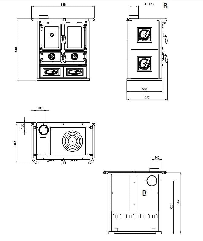 • Ölçüler: w  885x h 843 x  d 572 mm