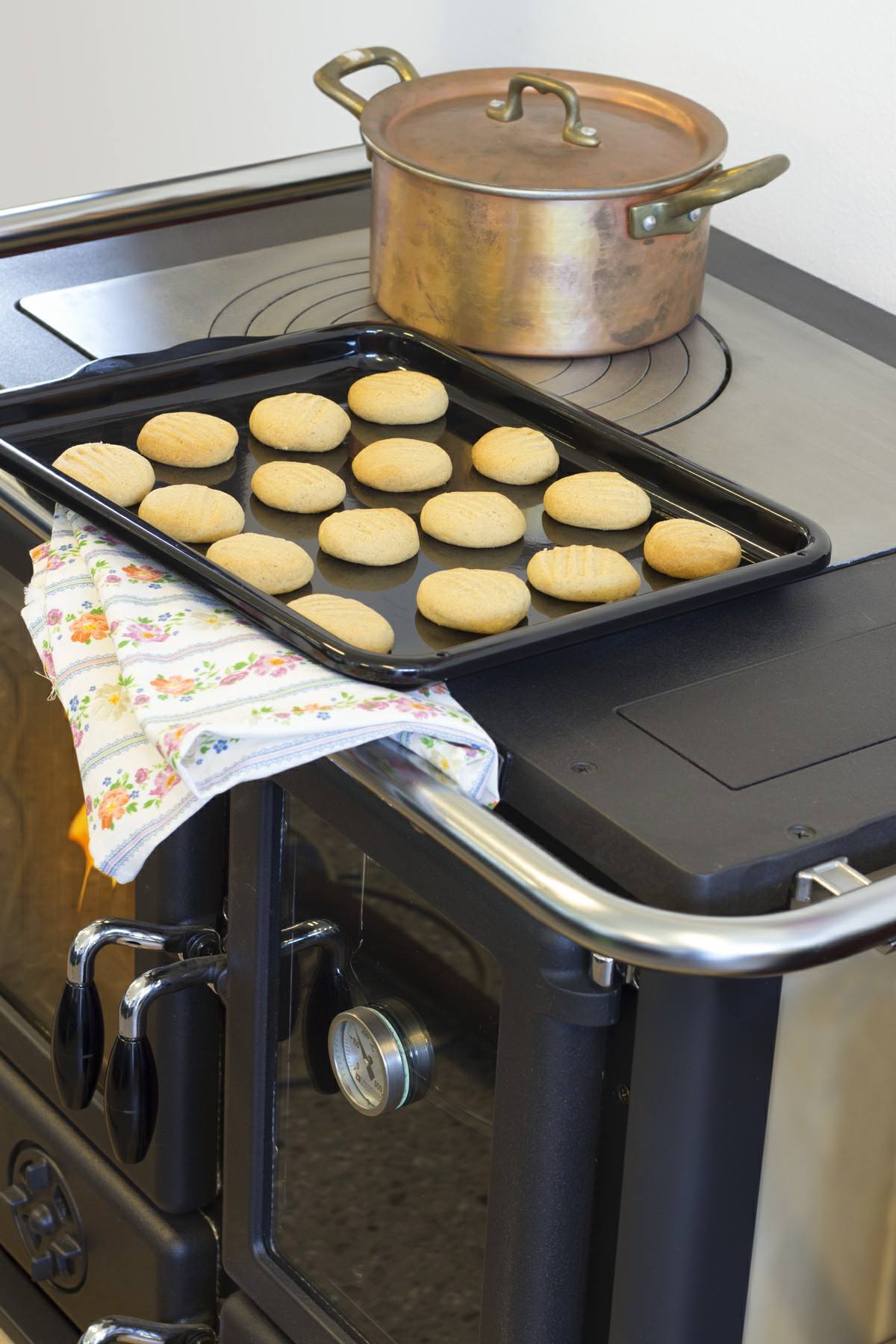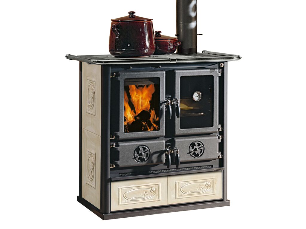La Nordica Rosetta’nın odun kurutma çekmecesi çok geniştir, böylece içine yeterince kütük konulabilir. Bu, yemek pişirirken odun getirme zahmetinden kurtarır. İsterseniz bu bölümü tencereleriniz depolamak içinde kullanabilirsiniz. La Nordica Rosetta’nın kalbi olan yanma bölümü, ahşap çekmecenin üzerinde yer alır ve yanında da fırın bölmesi bulunur.
