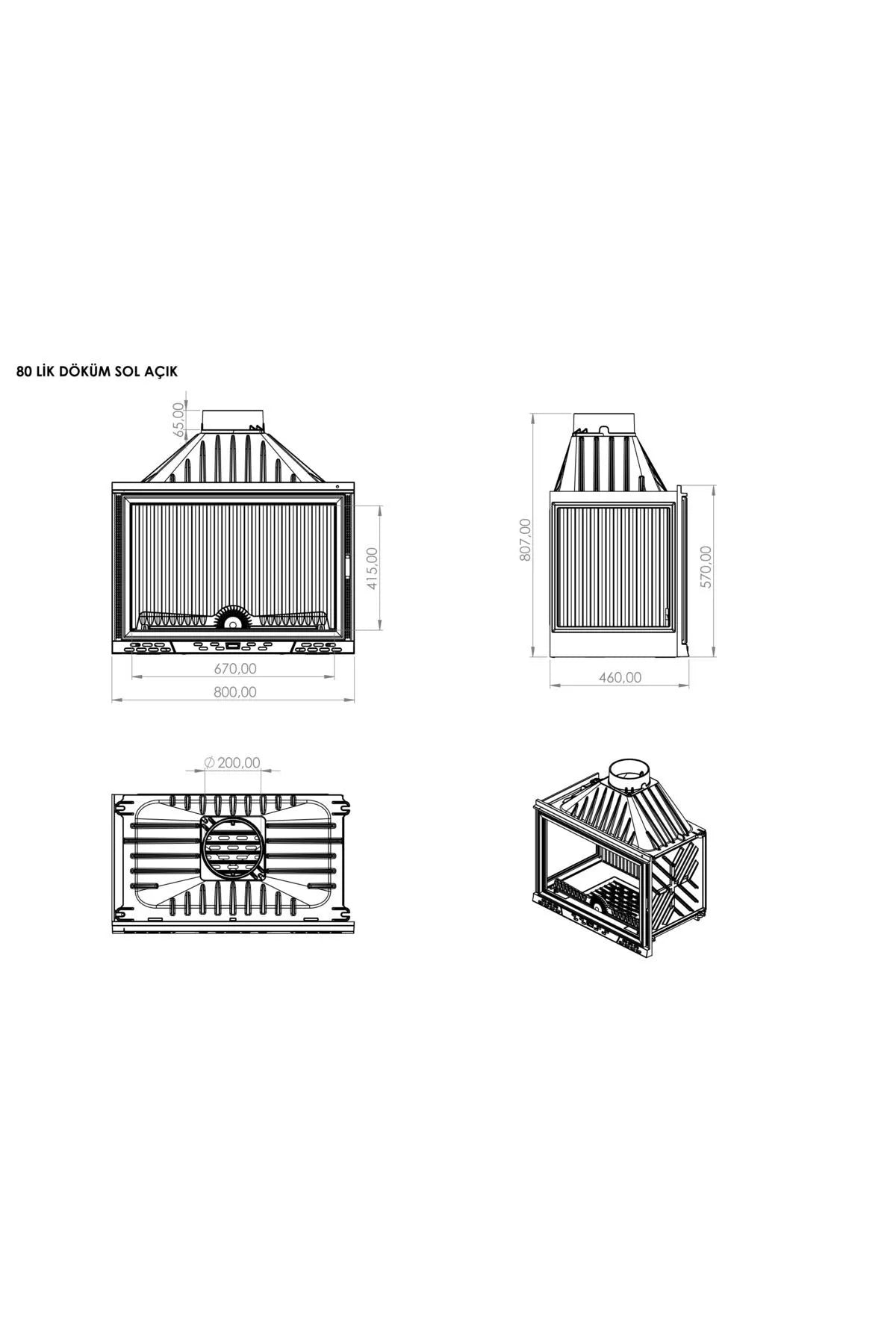 Serra LUXURY SERİSİ L Tipi Sol Açık Döküm Şömine Haznesi-80CM