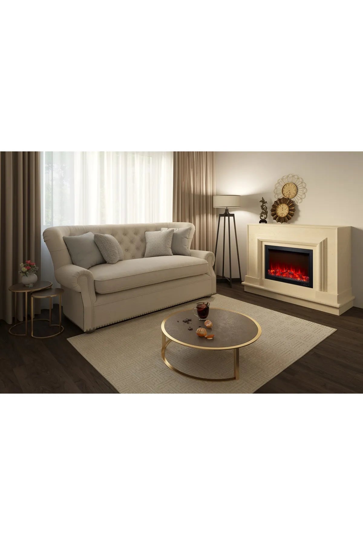 - uzaktan kumanda, manuel kontrol sistemi, alev efekti ve güvenlik şalteri gibi özellikler mevcuttur. Ses efekti yoktur. Sessizdir. Dilerseniz ısıtıcıyı çalıştırmadan şömine haznesi olarak görseli için de kullanabilirsiniz. 2 kademe ısı ayarı, 2 kademe görsel ayarı vardır. 25-30 metrekareye kadar ısıtma gücü vardır. Alttan üflemeli olup, bu sebeple yerdeki soğuk havayı daha hızlı ısıtabiliyor olması en önemli avantajıdır. Elektrikli şömineyi kullanmak için kışı beklemeyeceksiniz. Üretim % 95 oranında yerlidir. Ürünler karton kutu içerisinde, köpük destekli ambalajda olup, taşıma esnasında hasar görme riski en aza indirgenmiştir. Kutularda iki taraftan tutamaç delikleri mevcut olup taşıma kolaylığına sahiptir. Ürünlerimiz 2 yıl üretici garantili olup yedek parça stoğu mevcuttur. Isıtma Alanı: 25-30 m² Genişlik : 95 cm. Yükseklik : 57 cm. Derinlik : 20 cm.